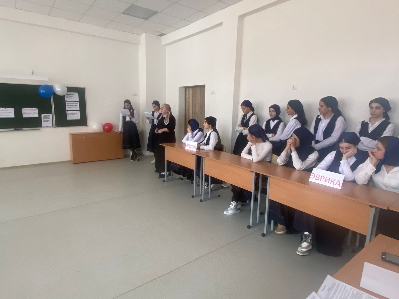 Участвовали команды: 8 кл-Эрудит, 9 кл-Эврика и 10 кл-Сфера.