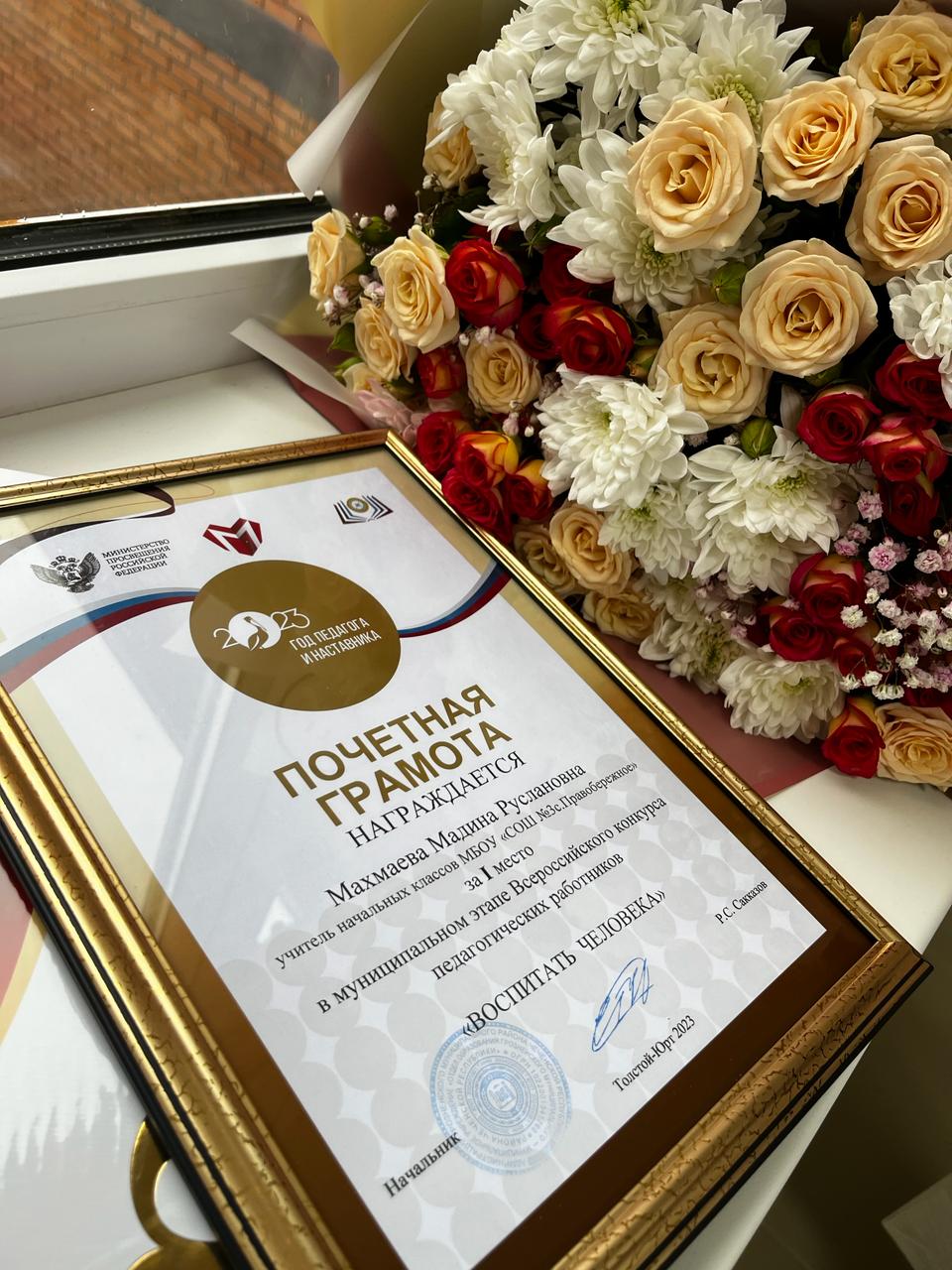 24.11.2023В период с 20.11.2023-23.11.2023г был проведен муниципальный этап Всероссийского конкурса педагогических работников «Воспитать человека». На этом конкурсе наша коллега Махмаева Мадина Руслановна выиграла 1 место.Желаем вдохновляться своими результатами и достижениями, с верой в себя непрерывно двигаться навстречу большим мечтам и жизненным целям!