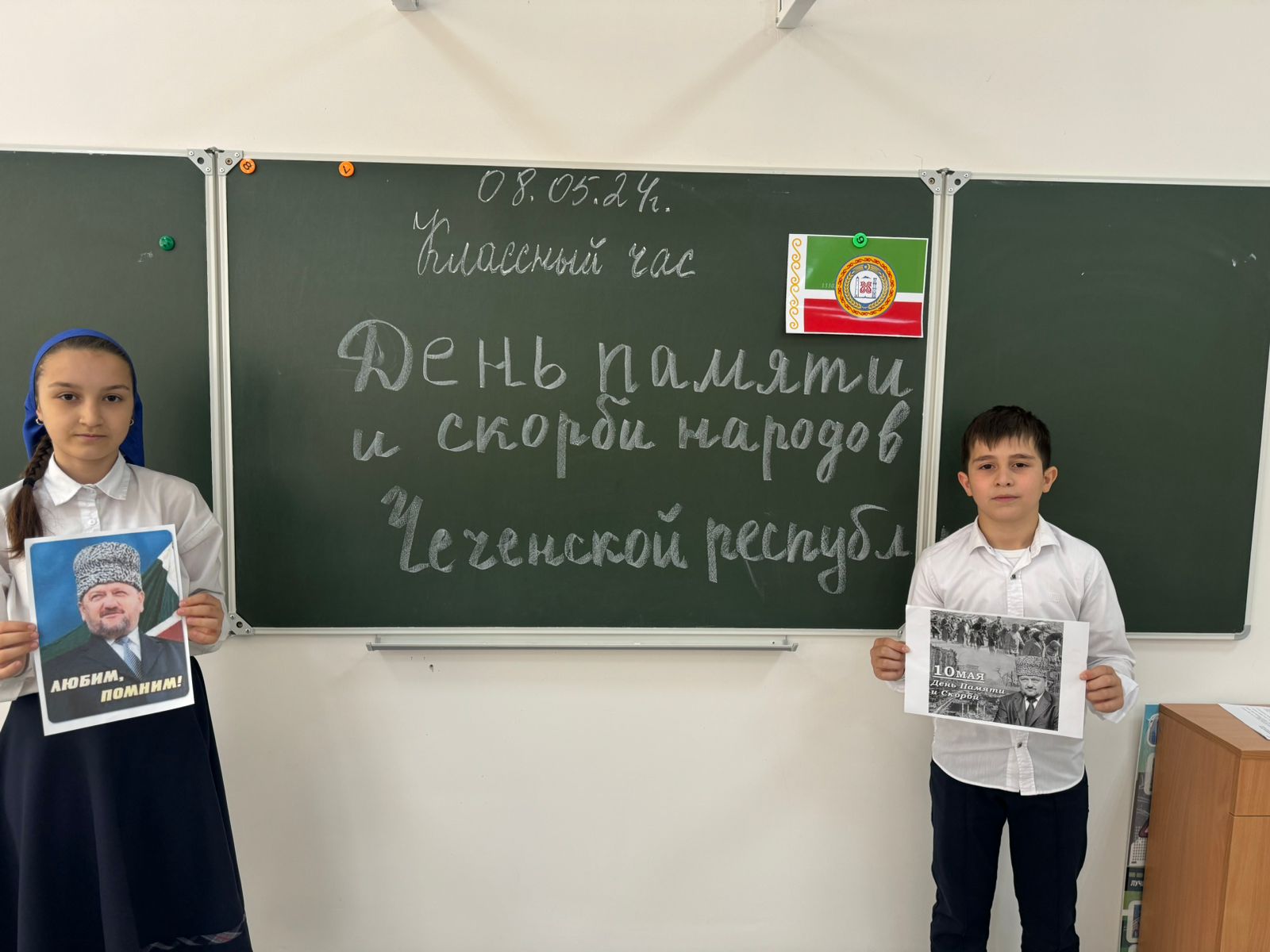 06.05.2024г. в МБОУ «СОШ №3 с. Правобережное» были проведены классные часы на темы: «Сын чеченского народа», «Будем помнить», «Мехкан къонаха».