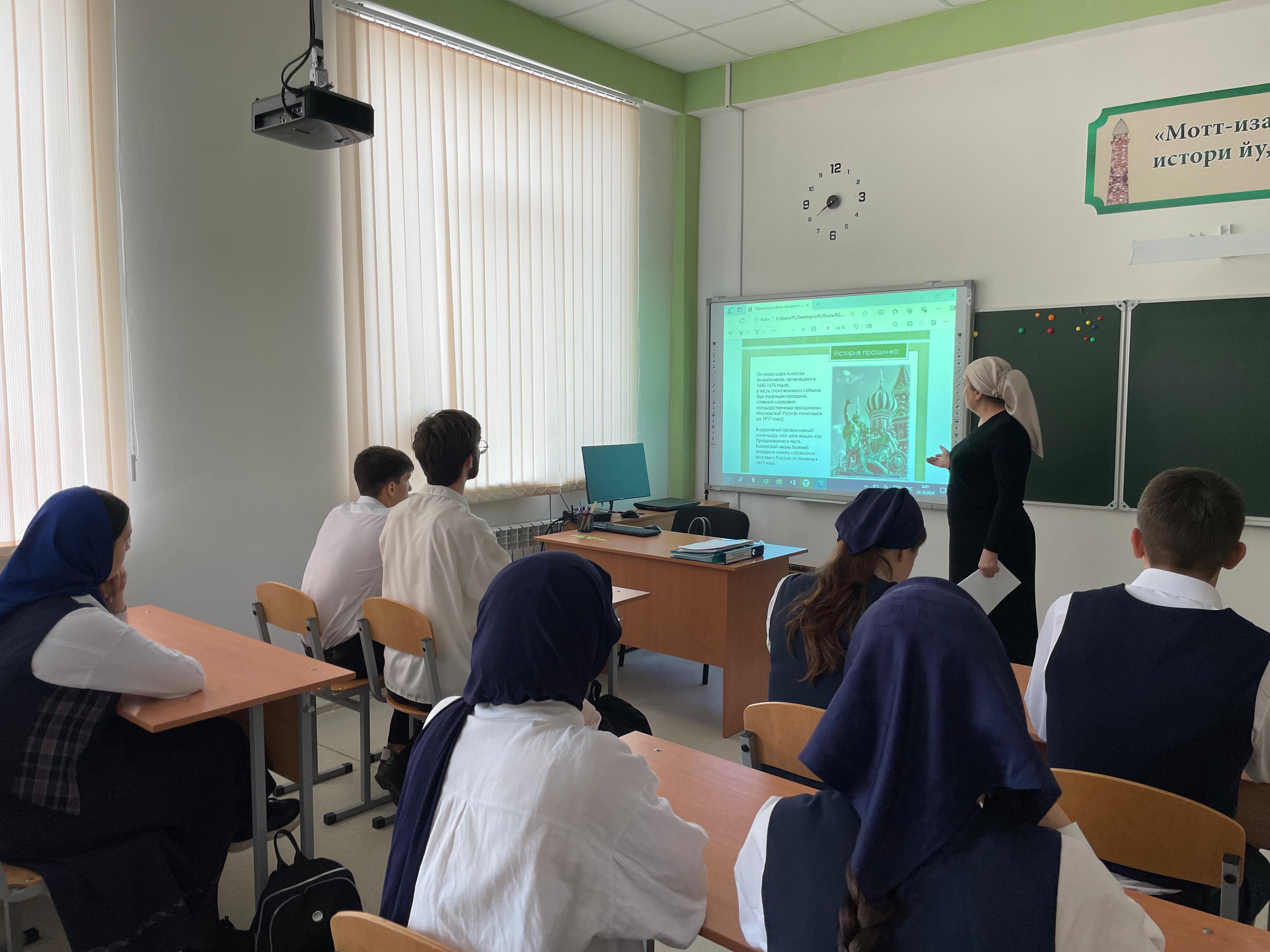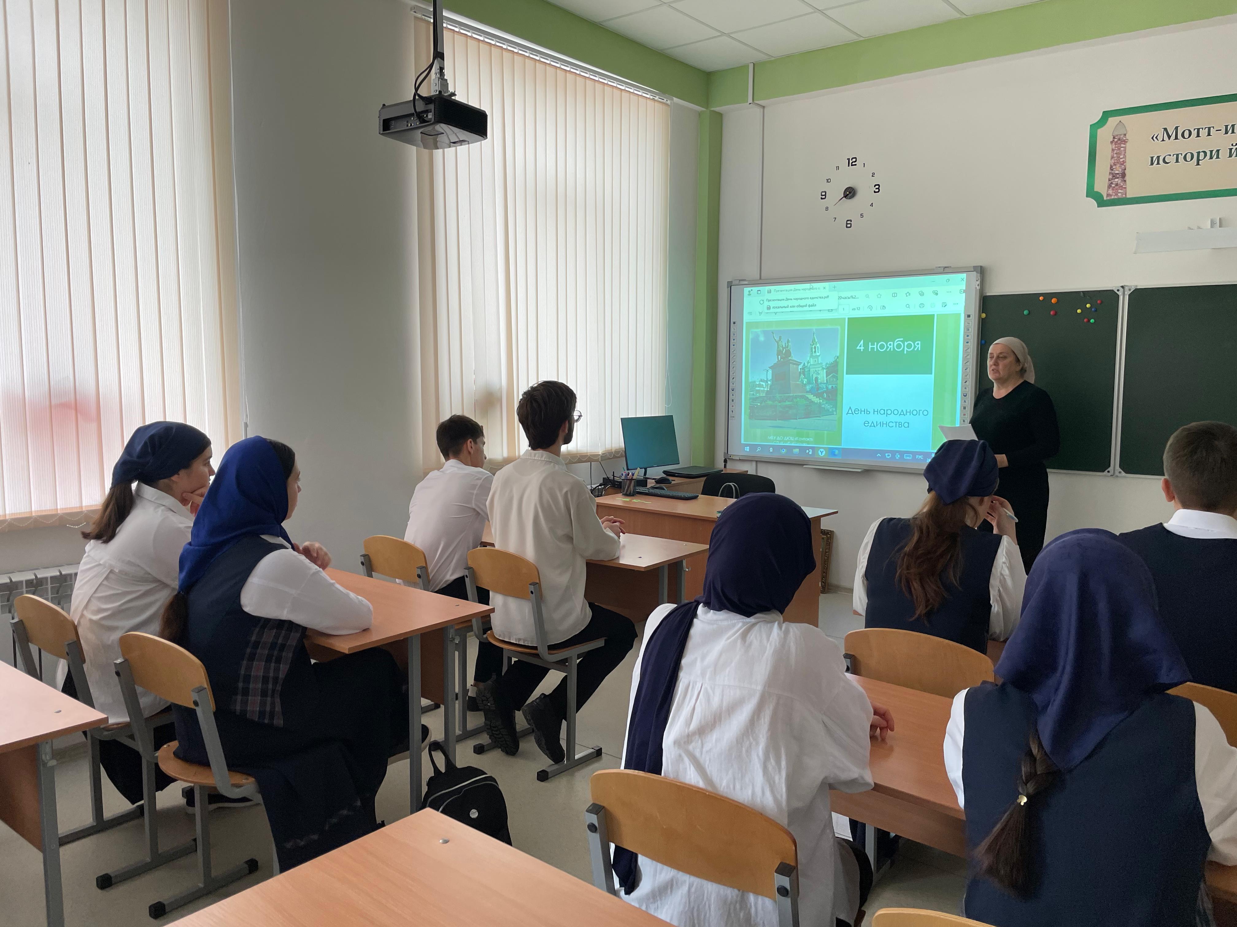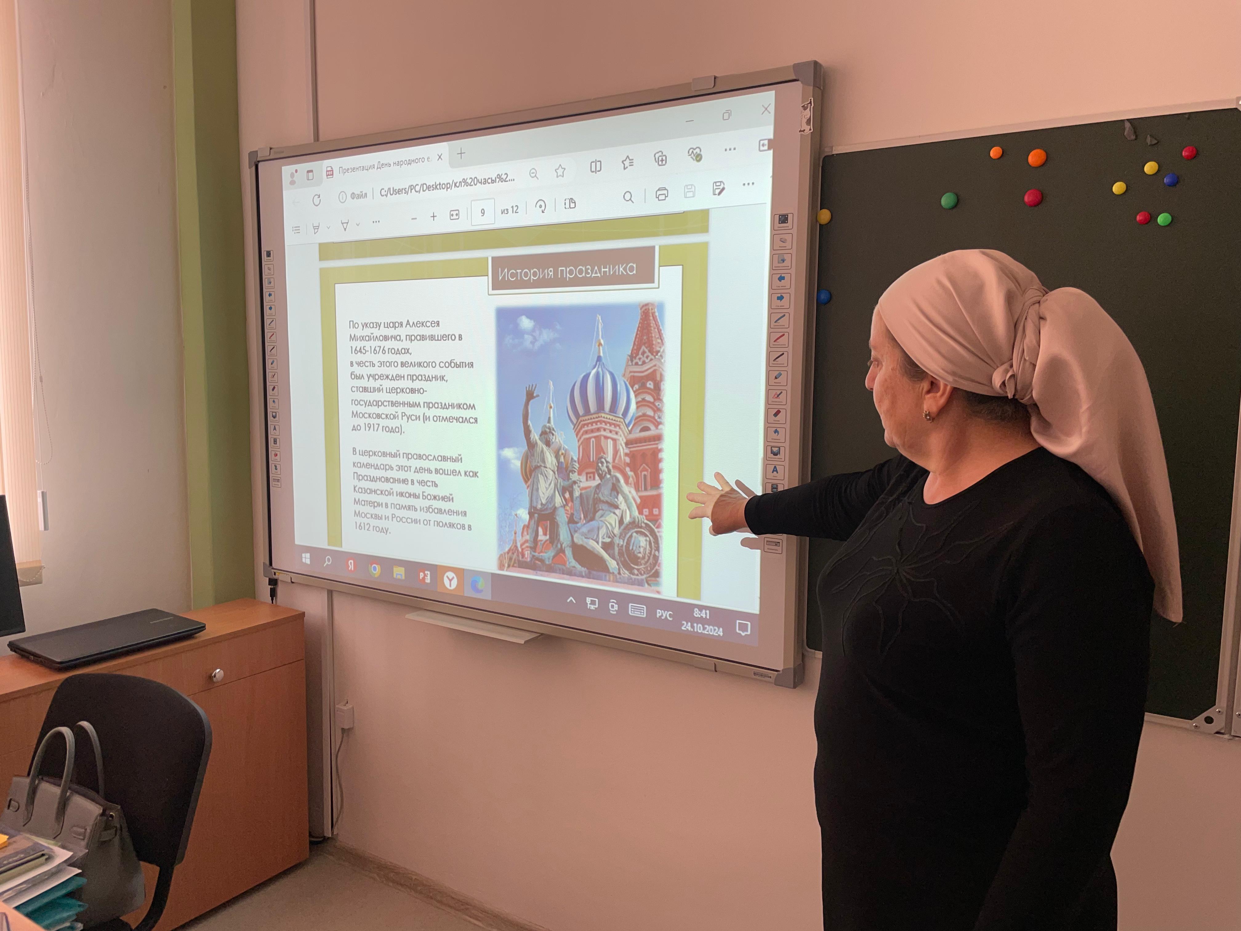 В МБОУ "СОШ №3 с. Правобережное" с 23.10.2024г. по 26.10.2024г. были проведены классные часы ко Дню народного единства.
