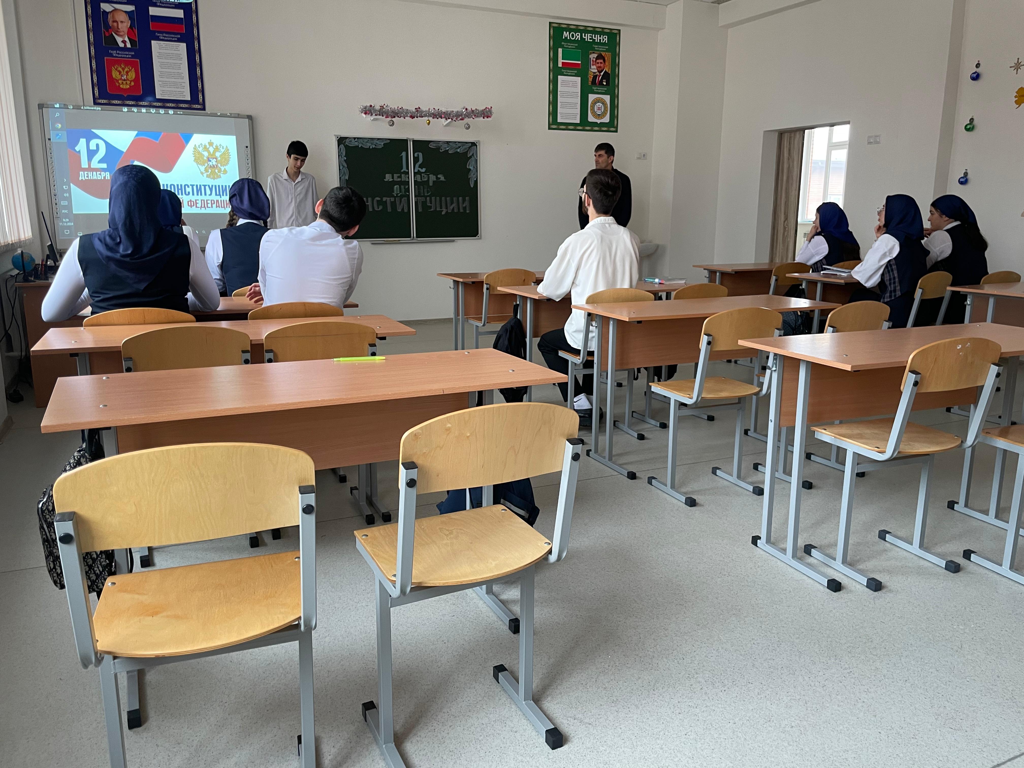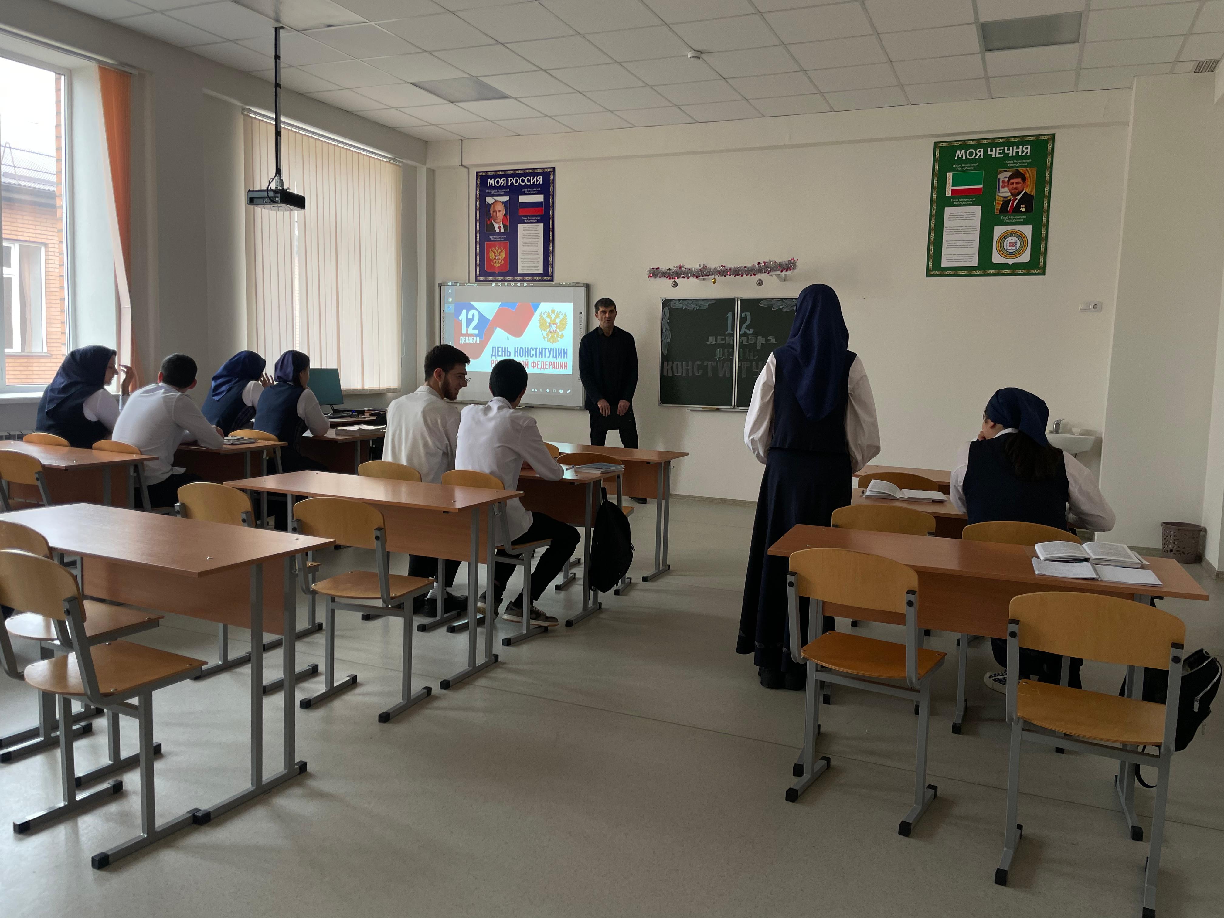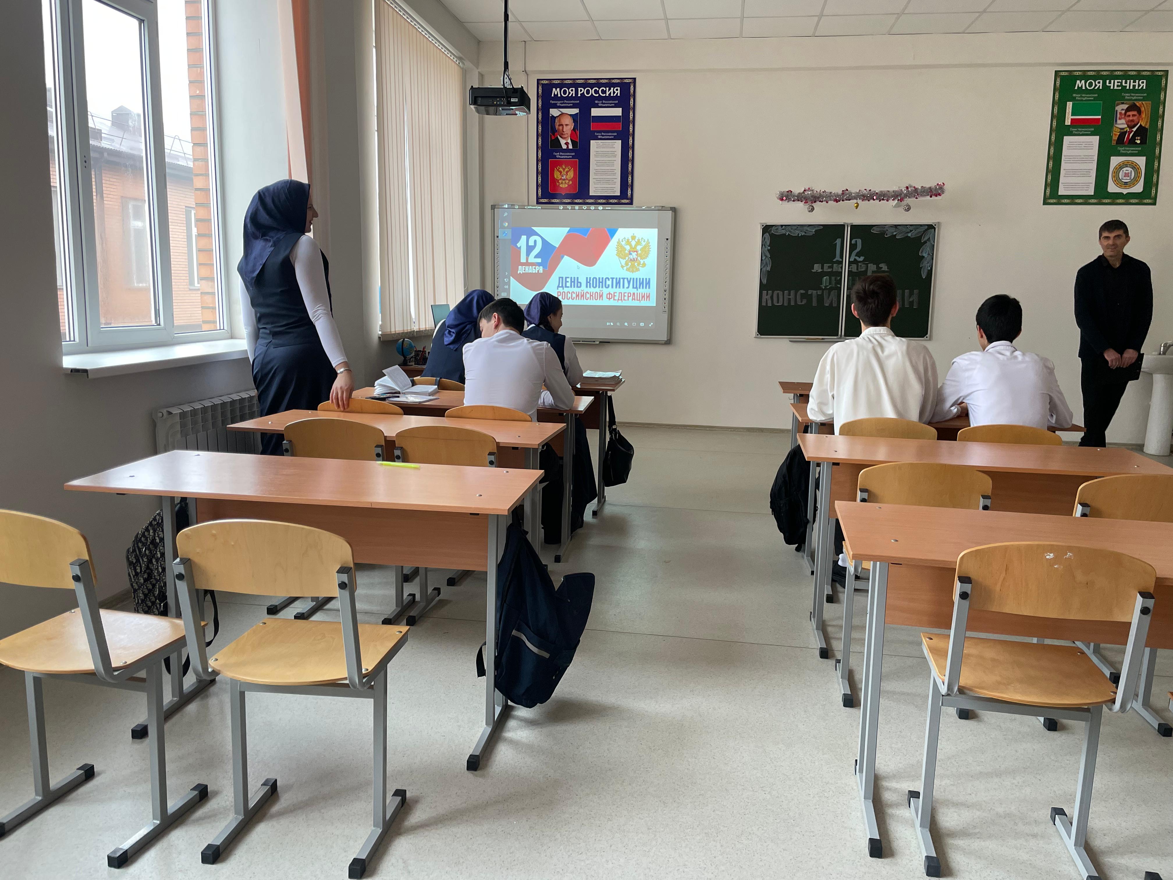 Учащиеся 8-11 кл на уроке-викторине "что ты знаешь о Конституции РФ"