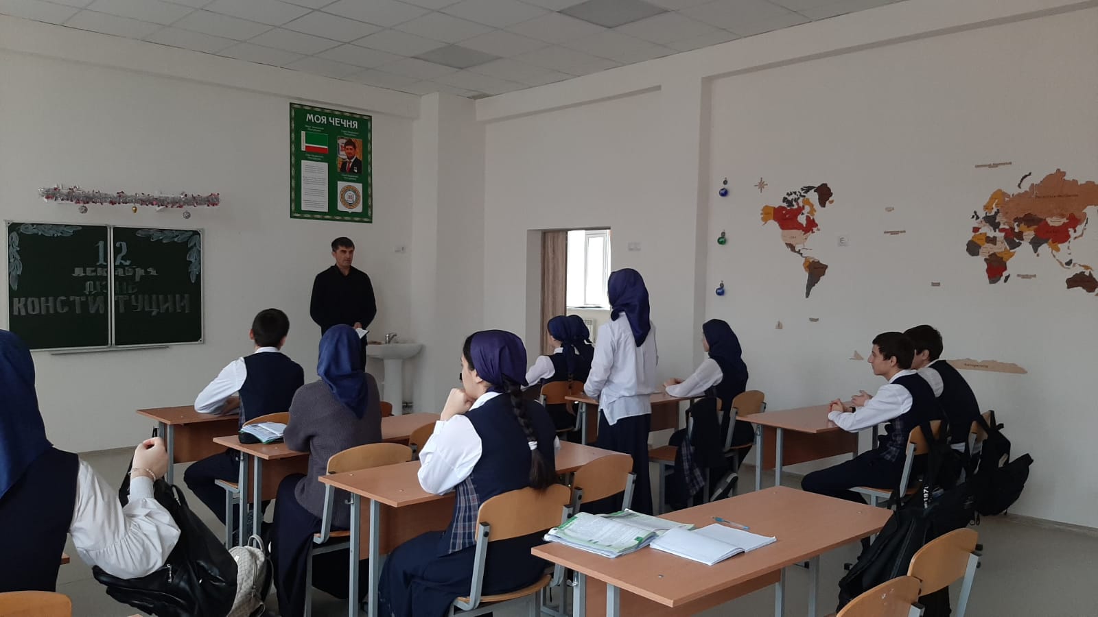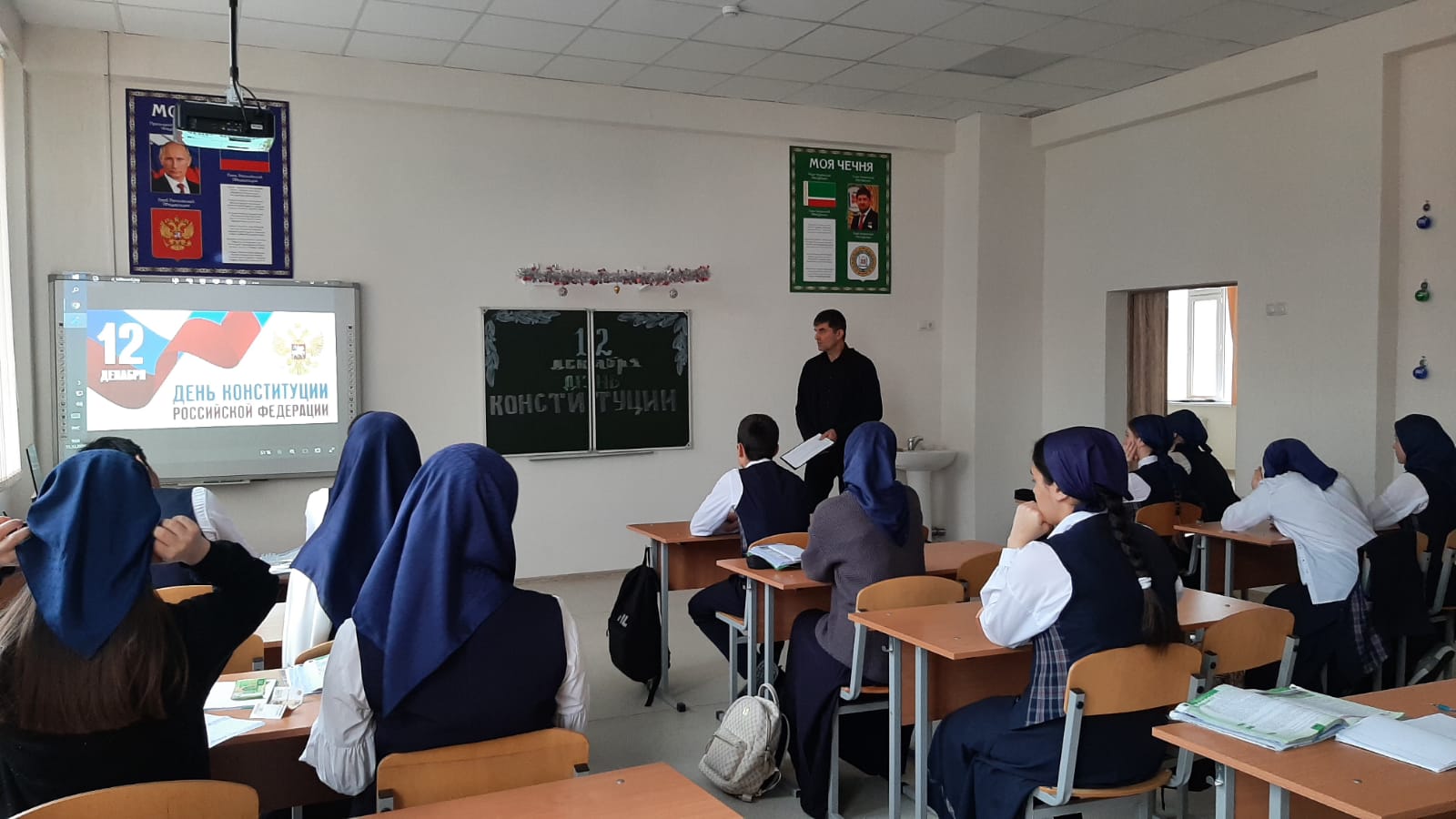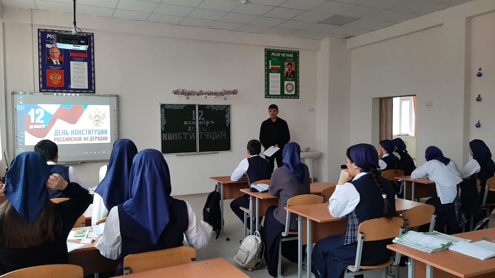 Учащиеся 8-11 кл на уроке-викторине "что ты знаешь о Конституции РФ"