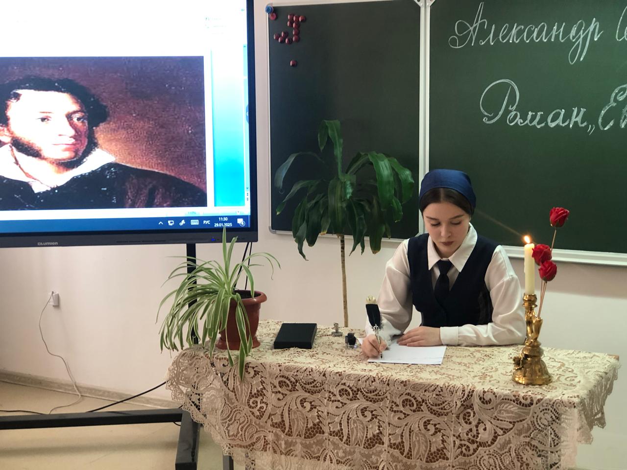 В МБОУ «СОШ № 3 с.Правобережное» 9 классе прошел урок литературы по теме: А.С. Пушкин. Роман «Евгений Онегин» письмо Татьяны к Огненину и письмо Онегина к Татьяне.