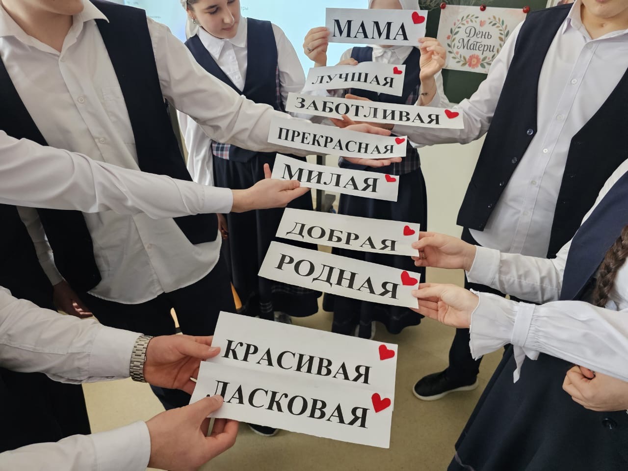 Педагоги школы провели тематические уроки и классные часы, направленные на формирование у учащихся ценности семьи и уважения к матери. Учащиеся обсуждали важность заботы и благодарности, участвовали в беседах, готовили творческие работы и презентации, посвященные мамам.