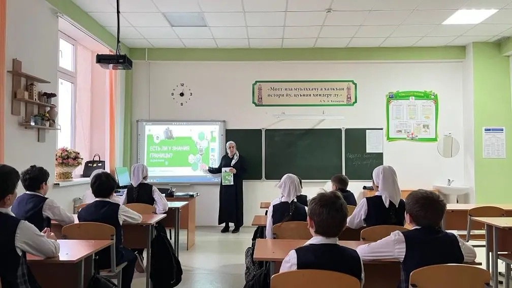 02.02.2026В школе прошла еженедельная общешкольная линейка с торжественным поднятием флагов Российской Федерации и Чеченской Республики под исполнение государственных гимнов. После линейки был проведён урок «Разговоры о важном» на тему «Есть ли у знания границы», в ходе которого учащиеся обсудили значение знаний, их роль в развитии личности и общества, а также возможности непрерывного обучения в современном мире.