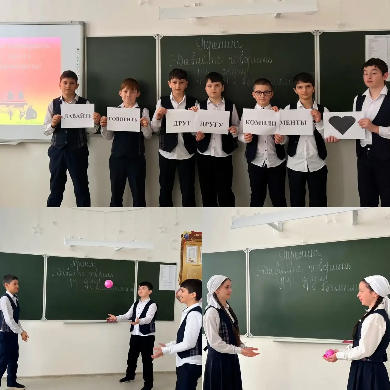 04.02.202604.02.2026г. педагогом-психологом с обучающимися 6 класса был проведён тренинг по развитию коммуникативных способностей «Давайте говорить друг другу комплименты».Занятие прошло в доброжелательной и поддерживающей атмосфере. Ребята с интересом участвовали в игровых упражнениях: передавая мяч друг другу, они учились говорить искренние комплименты, слышать и принимать добрые слова в свой адрес. Особый отклик у детей вызвали индивидуальные карточки с комплиментами — каждому достались разные, что сделало задание по-настоящему личным и эмоционально значимым. Тренинг помог детям почувствовать ценность каждого участника и способствовал укреплению тёплых взаимоотношений в классе.