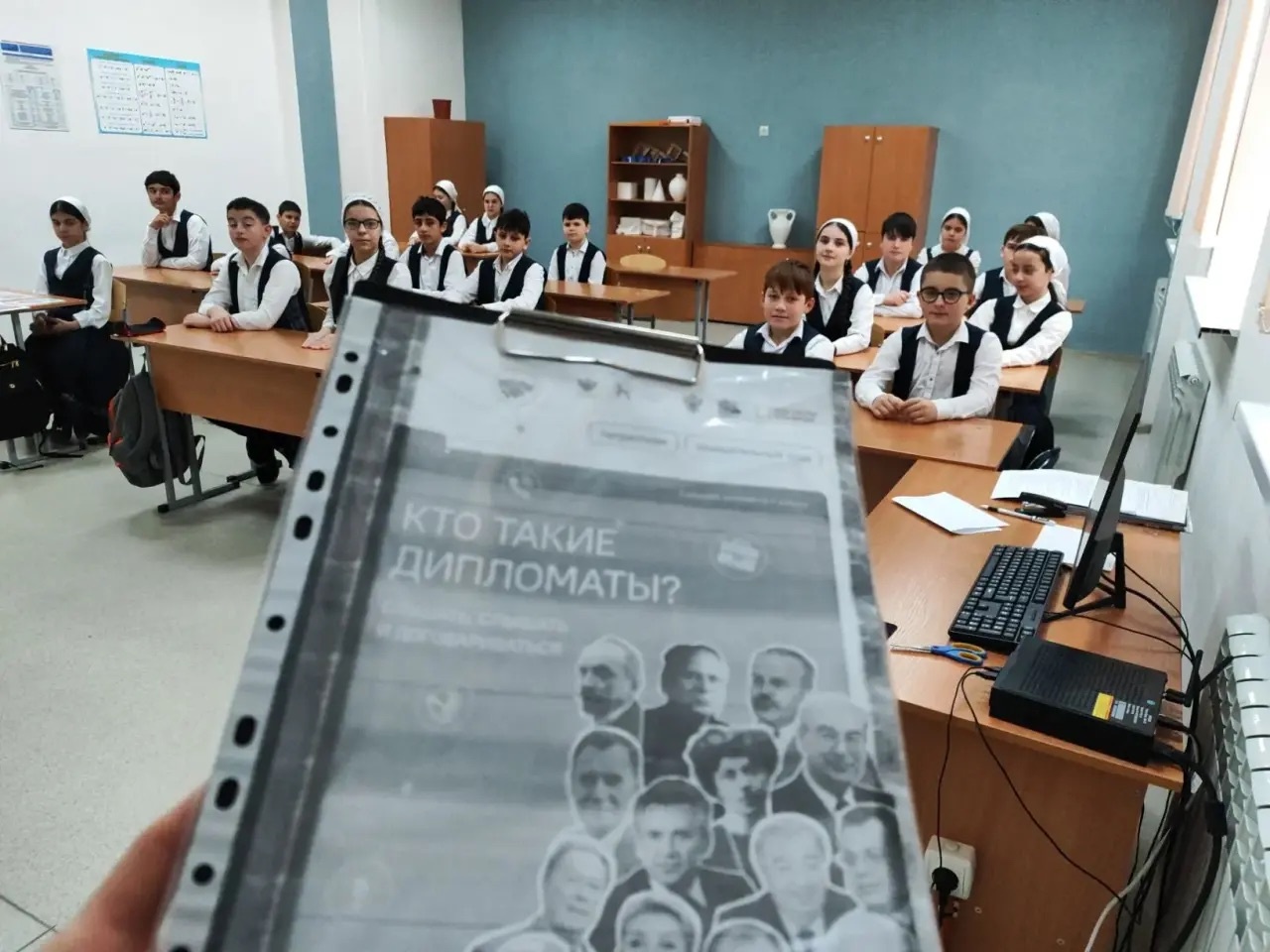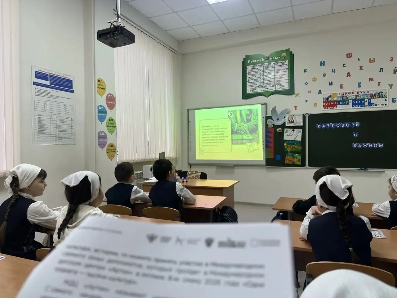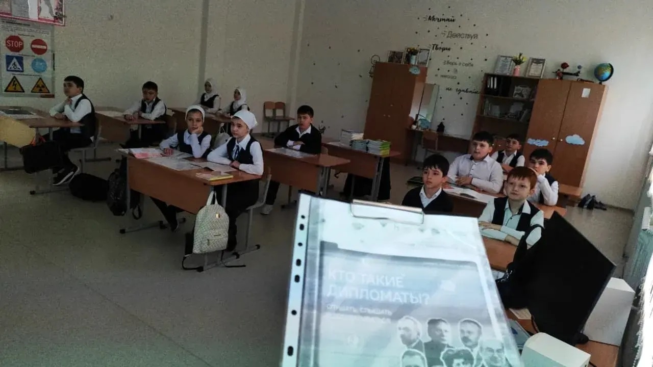 После линейки был проведён урок «Разговоры о важном» на тему «Кто такие дипломаты», в ходе которого учащиеся узнали, что такое дипломатия и какую роль дипломаты играют в международных отношениях. В рамках занятия обсуждались основные задачи дипломатической службы, такие как укрепление мира, развитие сотрудничества между государствами, защита интересов своей страны и её граждан за рубежом. Также было отмечено, какими личными качествами должен обладать дипломат и почему эта профессия важна в современном мире.