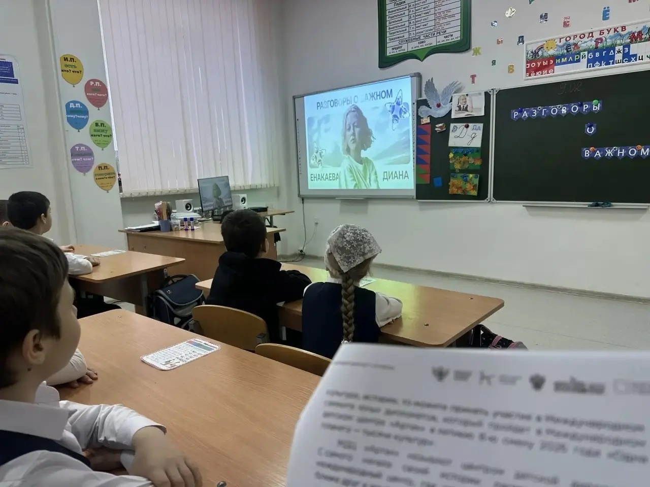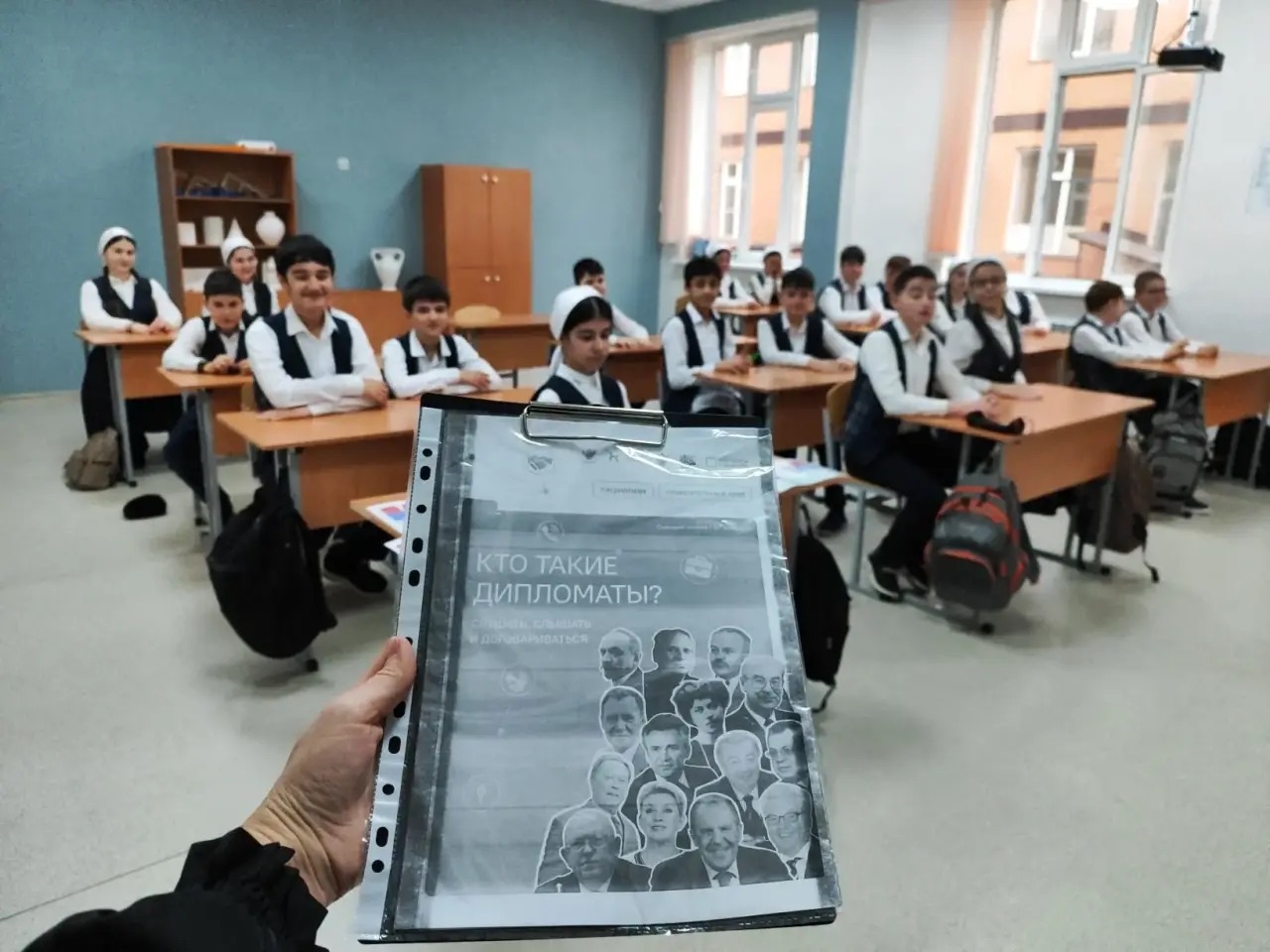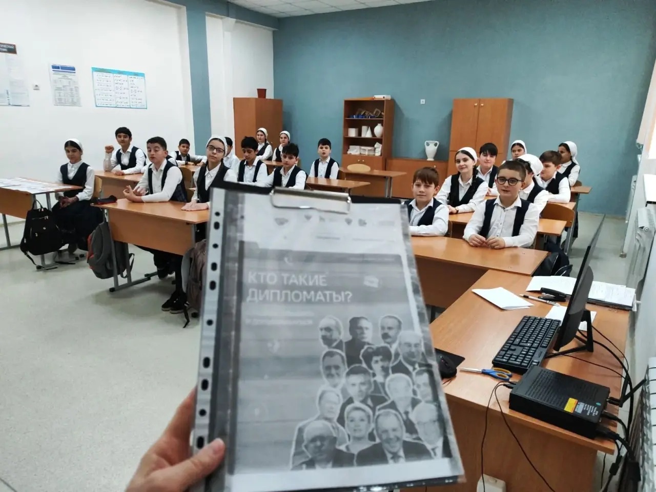 После линейки был проведён урок «Разговоры о важном» на тему «Кто такие дипломаты», в ходе которого учащиеся узнали, что такое дипломатия и какую роль дипломаты играют в международных отношениях. В рамках занятия обсуждались основные задачи дипломатической службы, такие как укрепление мира, развитие сотрудничества между государствами, защита интересов своей страны и её граждан за рубежом. Также было отмечено, какими личными качествами должен обладать дипломат и почему эта профессия важна в современном мире.